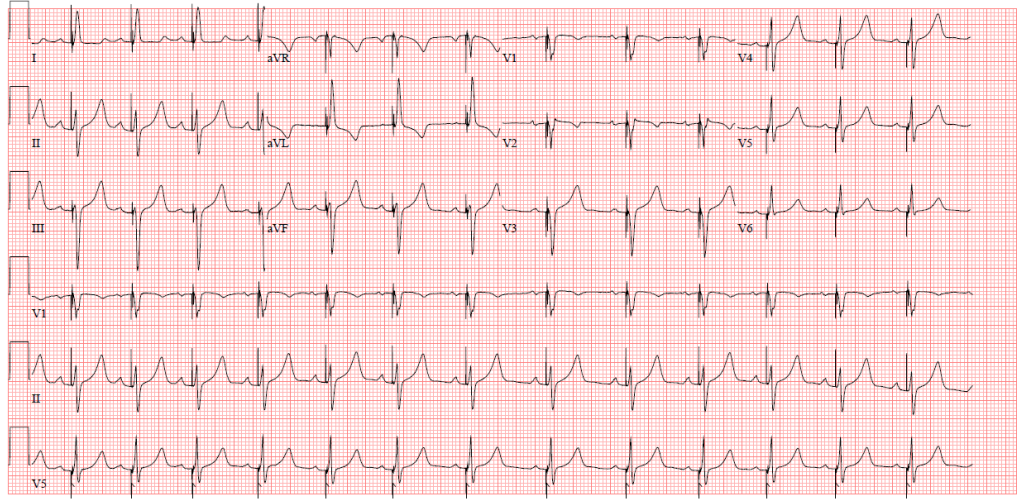 Ασθενής με συμπτωματικό 2:1 κολποκοιλιακό αποκλεισμό (AV block) προσήλθε με ζάλη και κόπωση, με βασικό ρυθμό φλεβοκομβικό και ασταθή αγωγή προς τις κοιλίες. Αποφασίστηκε τοποθέτηση μόνιμου βηματοδότη με τεχνική Left Bundle Branch Pacing (LBBP), με καθοδήγηση μέσω του μεσοκοιλιακού διαφράγματος για επίτευξη σύλληψης του αριστερού σκέλους.